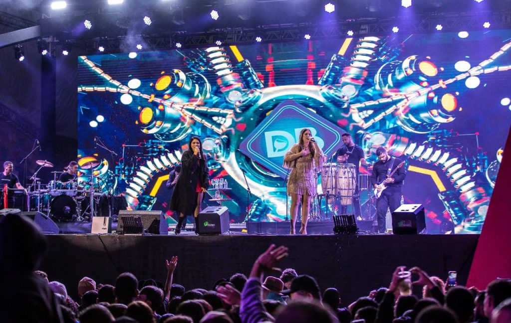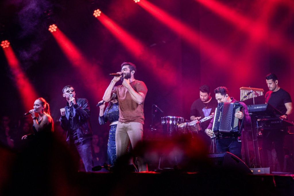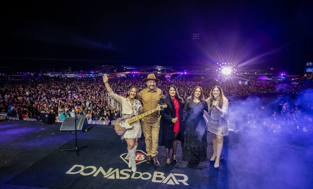 Logo em seguida, o cantor Grelo levou irreverência e talento ao palco, interpretando músicas autorais que já são destaque no cenário nacional. O romantismo ganhou força com a apresentação de As Donas do Bar, embalando os corações apaixonados com canções cheias de sentimento.