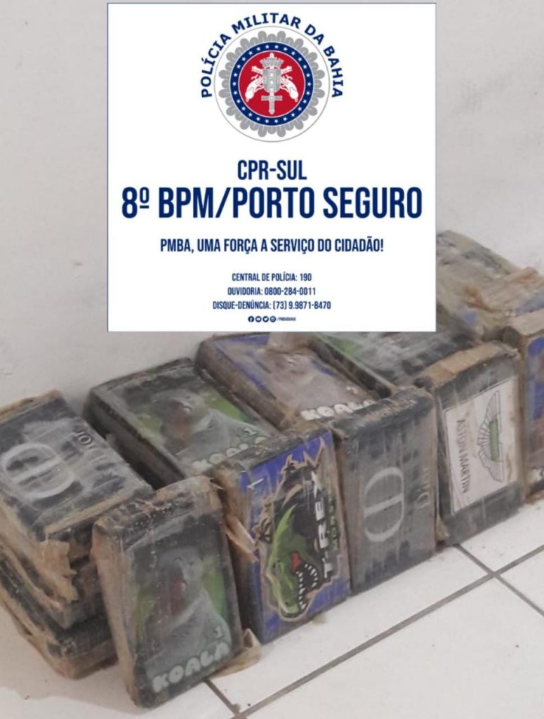 O material foi encontrado em meio à vegetação, na Praia do Moreno, onde momentos antes, os policiais visualizaram um grupo de homens, que fugiram ao notar a presença dos militares.
