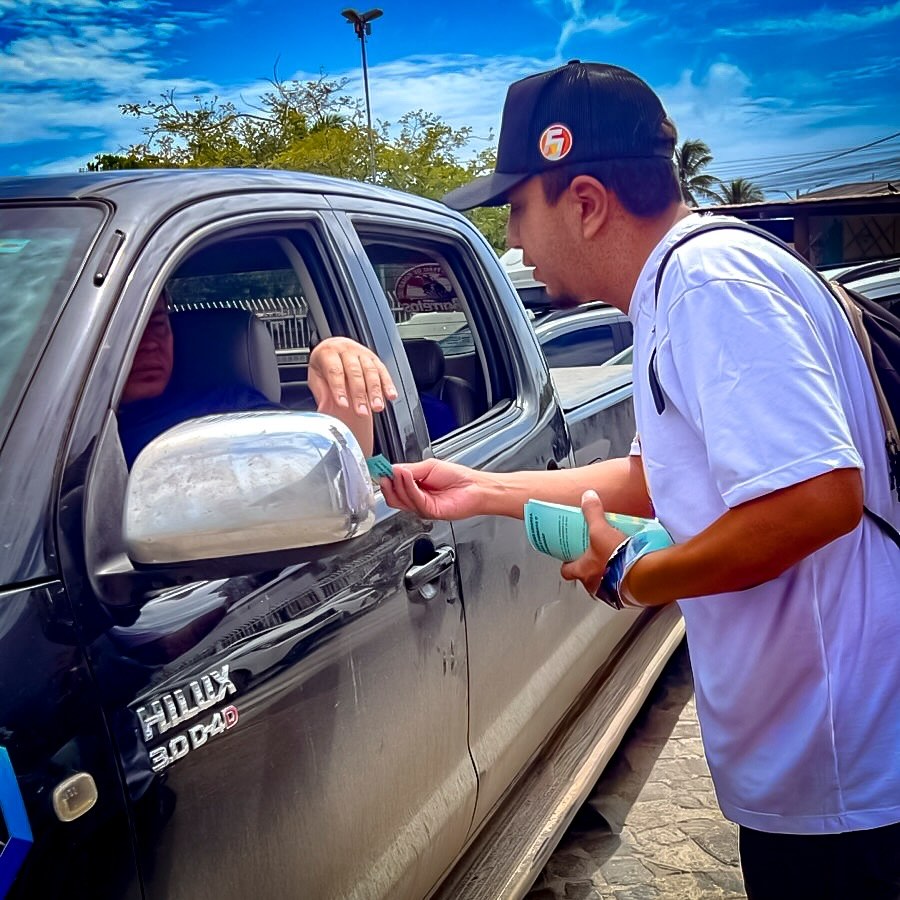 Durante a ação, materiais informativos foram entregues ao público, com orientações sobre como identificar situações de trabalho infantil e os principais canais para fazer denúncias.