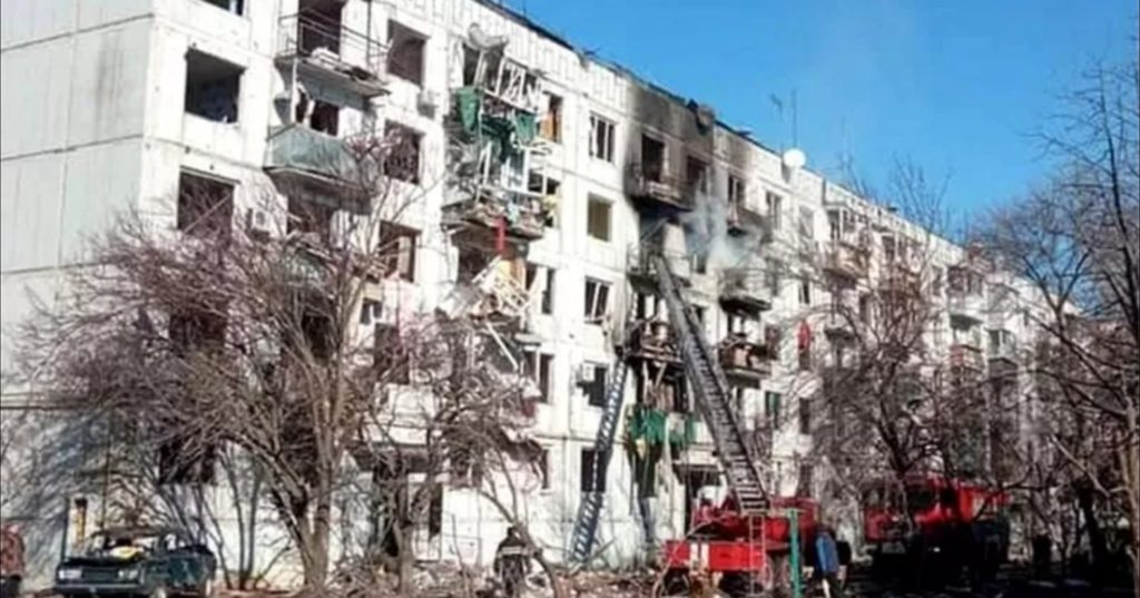 A explosão provocou incêndios em vários apartamentos em Chuhuiv, um pequeno município nos arredores da segunda maior cidade da Ucrânia, Kharkiv.