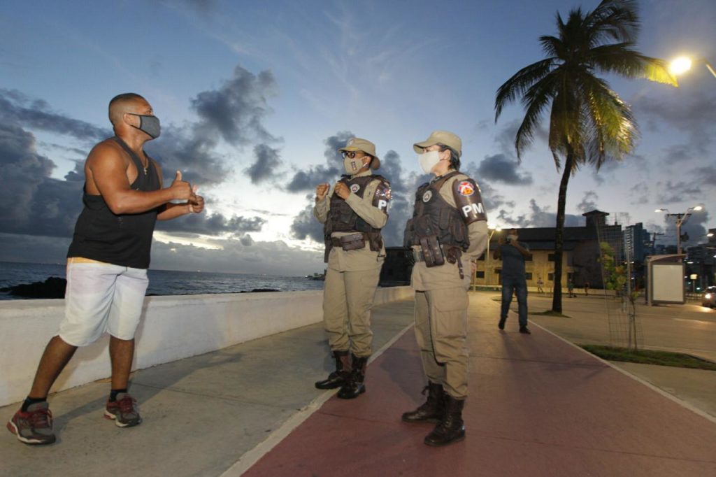 Em Salvador, a 12ª Companhia Independente da Polícia Militar (CIPM), responsável pelos bairros do Rio Vermelho e Ondina, executa o trabalho sob o comando da major Érica Patricia. “Nesse momento, a orientação é de negociação com as pessoas, principalmente nesta data de hoje, em que se inicia o novo horário do toque de recolher”, contou.